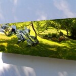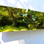 The 6th prototype in a series for the arch>scul name.  It is kept in the same manner as No.4 and No.5 with the evolution being done using reflective materials causing a mix of images that move between clear and distorted.  The size is a bit larger 62″ x 20″ and the material is made of birch wood and metal.  Plus stronger magnets.