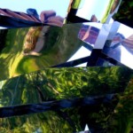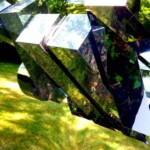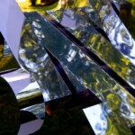 The diffuse reflections and scattering of visuals cause the light to react with whatever it encounters.  It is just awesome, and so much fun to move into different configurations each movement making a whole new work of art.  You can readjust the sculpture to any shape you like.